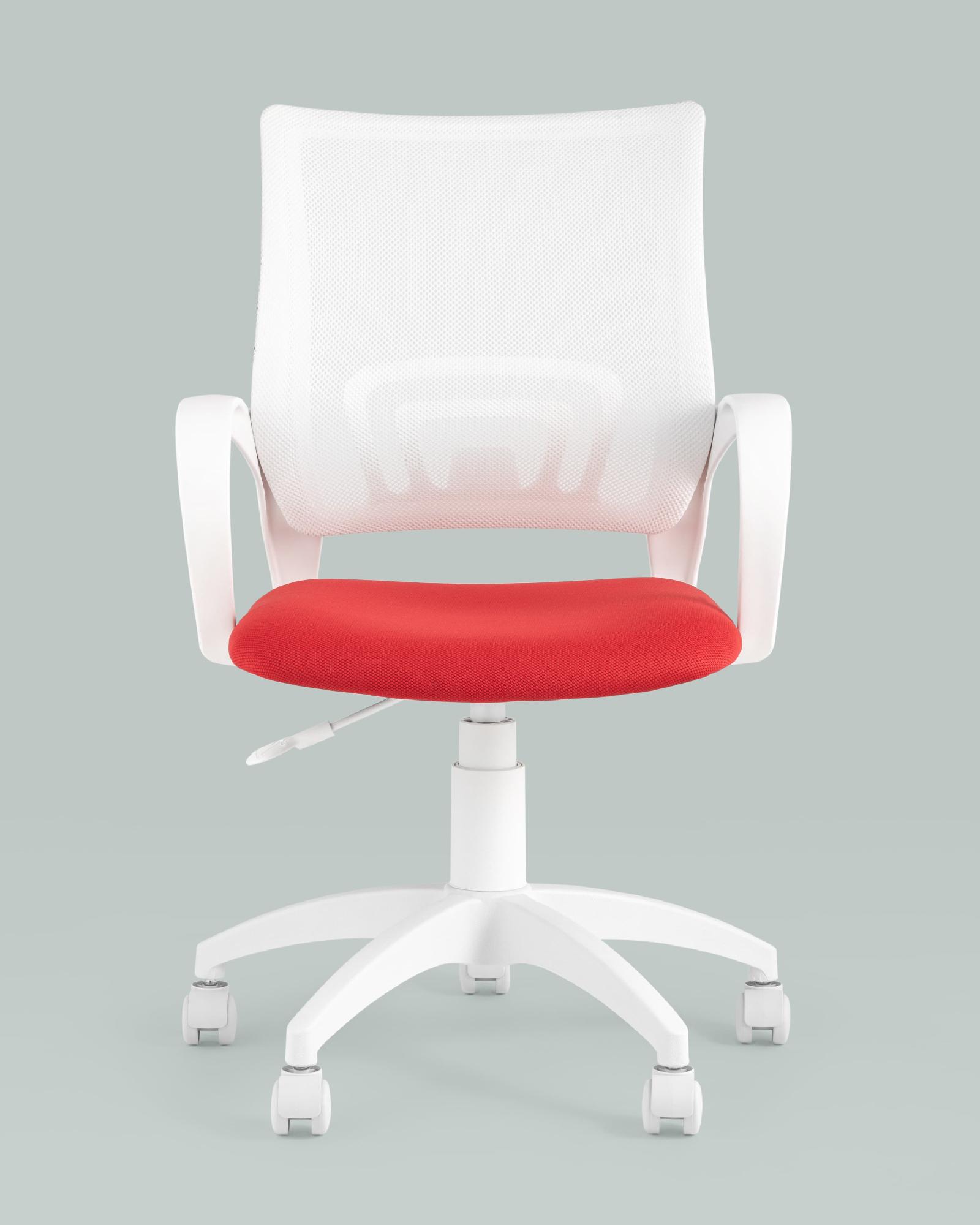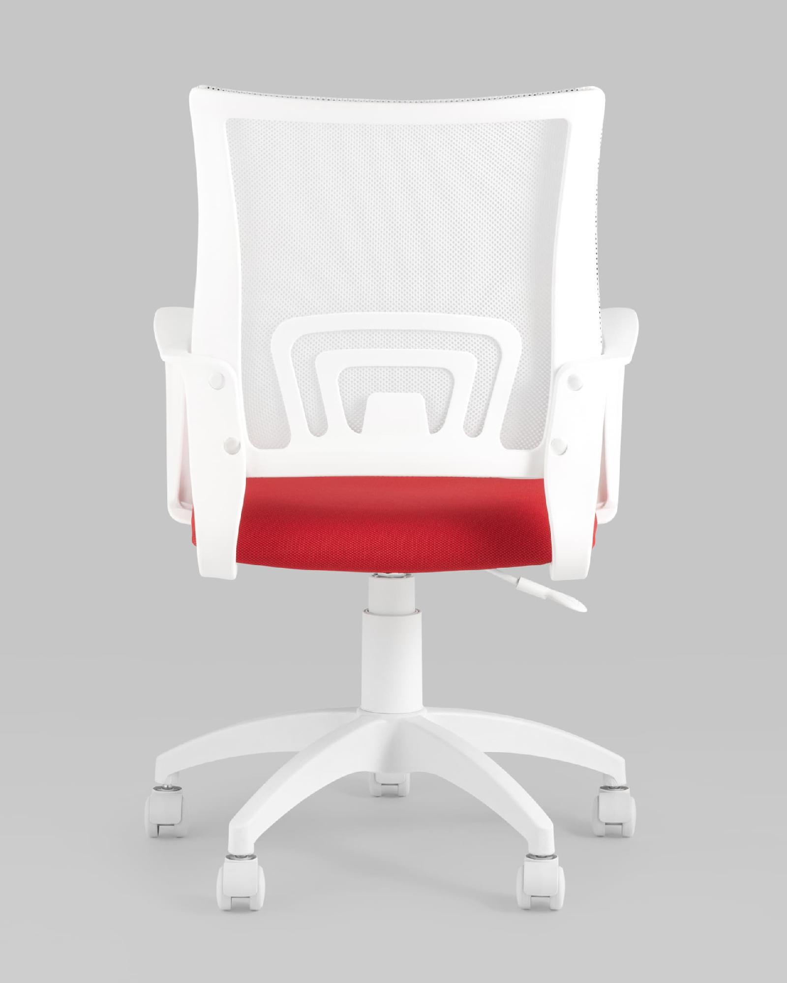Кресло офисное ST-BASIC-W TopChairs спинка белая сетка сиденье красная ткань крестовина белый пластик