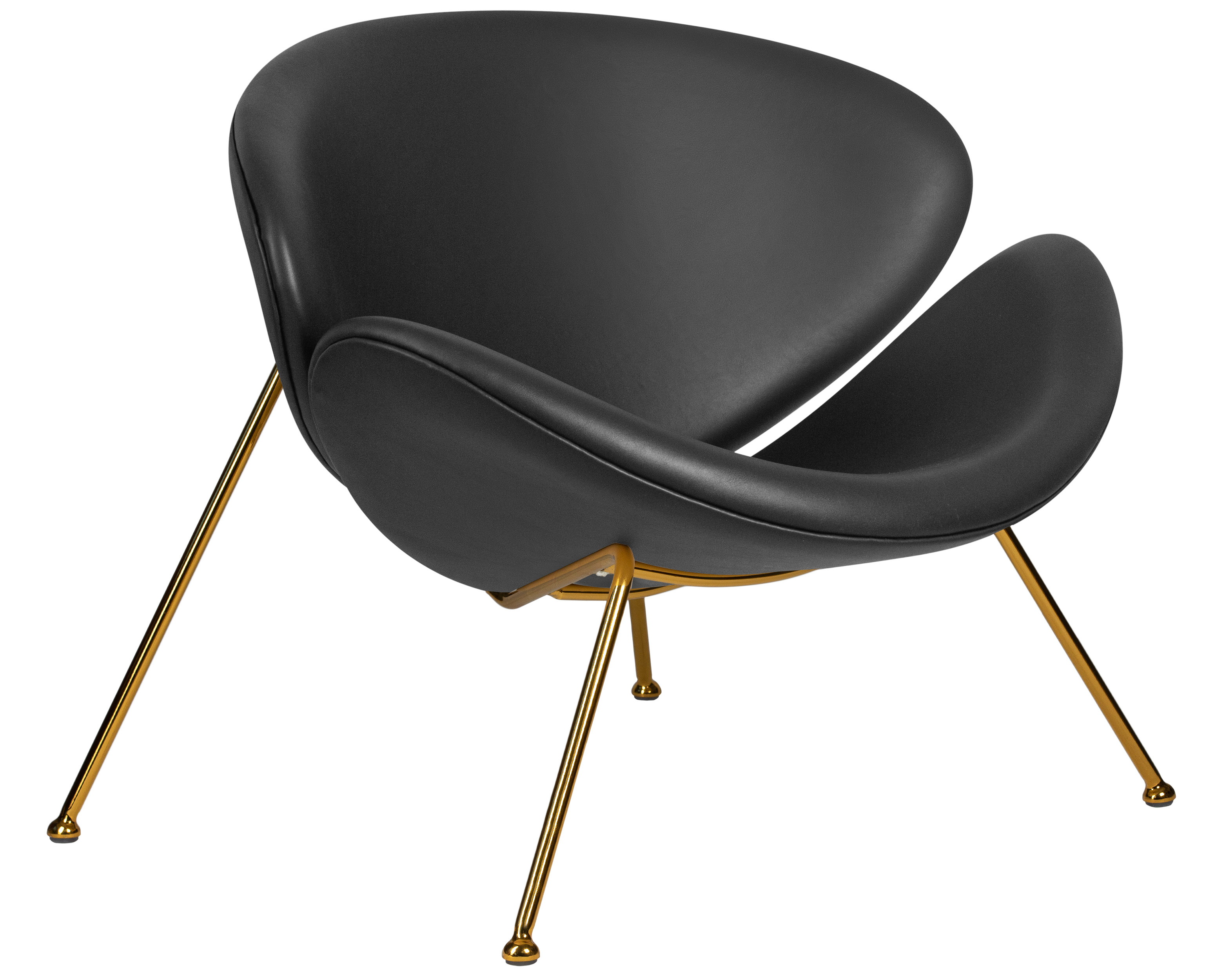 Кресло дизайнерское EMILY, черный винил YP16, золотое основания - представляет собой стильное и удобное решение для вашего интерьера. Товар доступен в различных цветовых вариантах, включая черный и золотой, что позволяет выбрать оптимальные решение под ваш стиль и предпочтения. Мягкость сиденья обеспечивает комфорт и удобство. Каркас изделия - металл, обеспечивает прочность и долговечность конструкции, при этом сохраняя легкость и изящество дизайна.