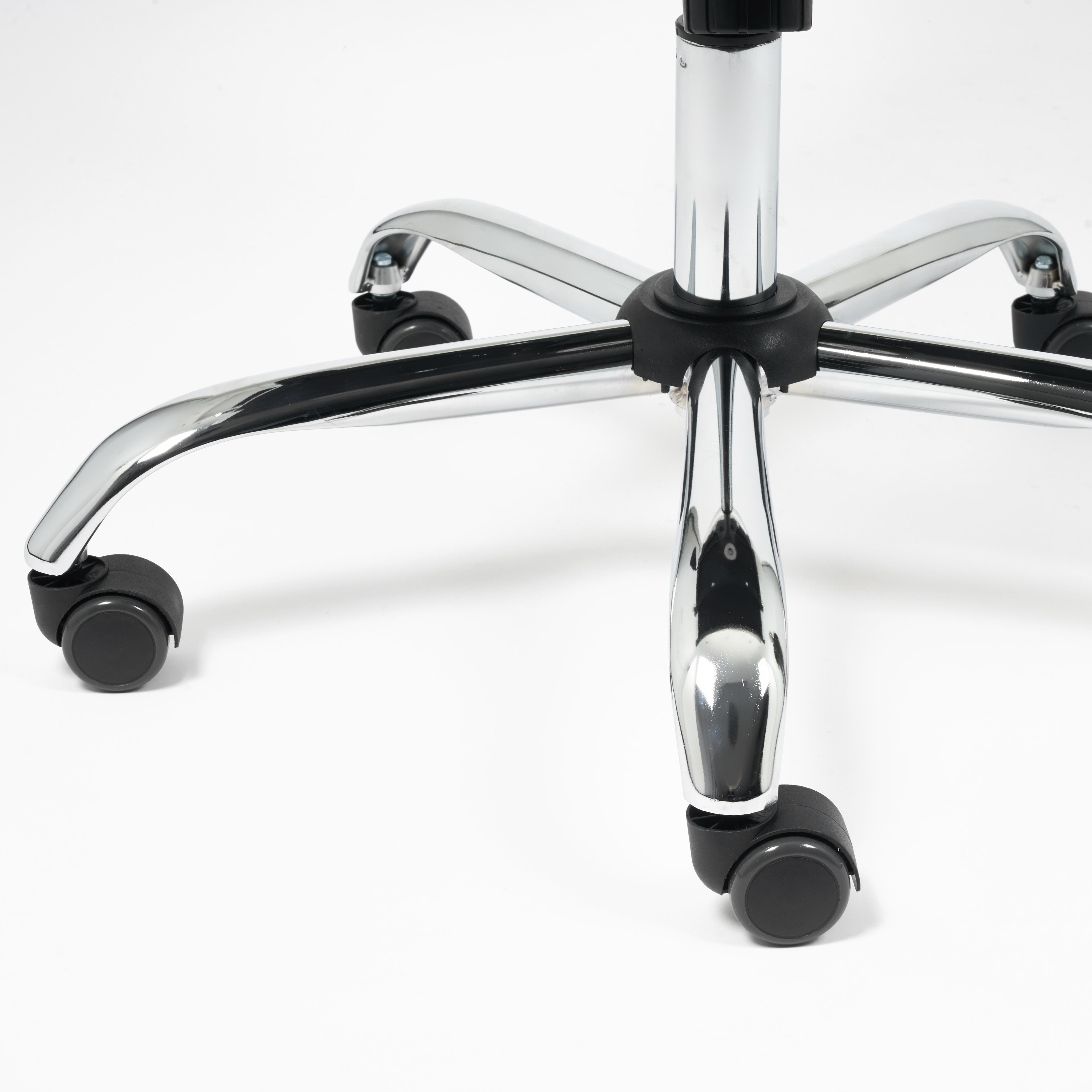 Механизм качания с фиксацией в вертикальном положении. Подлокотники хромированные с накладками из искусственной кожи. Крестовина хромированная. Ролики - прорезиненные. Максимальная нагрузка 120 кг.