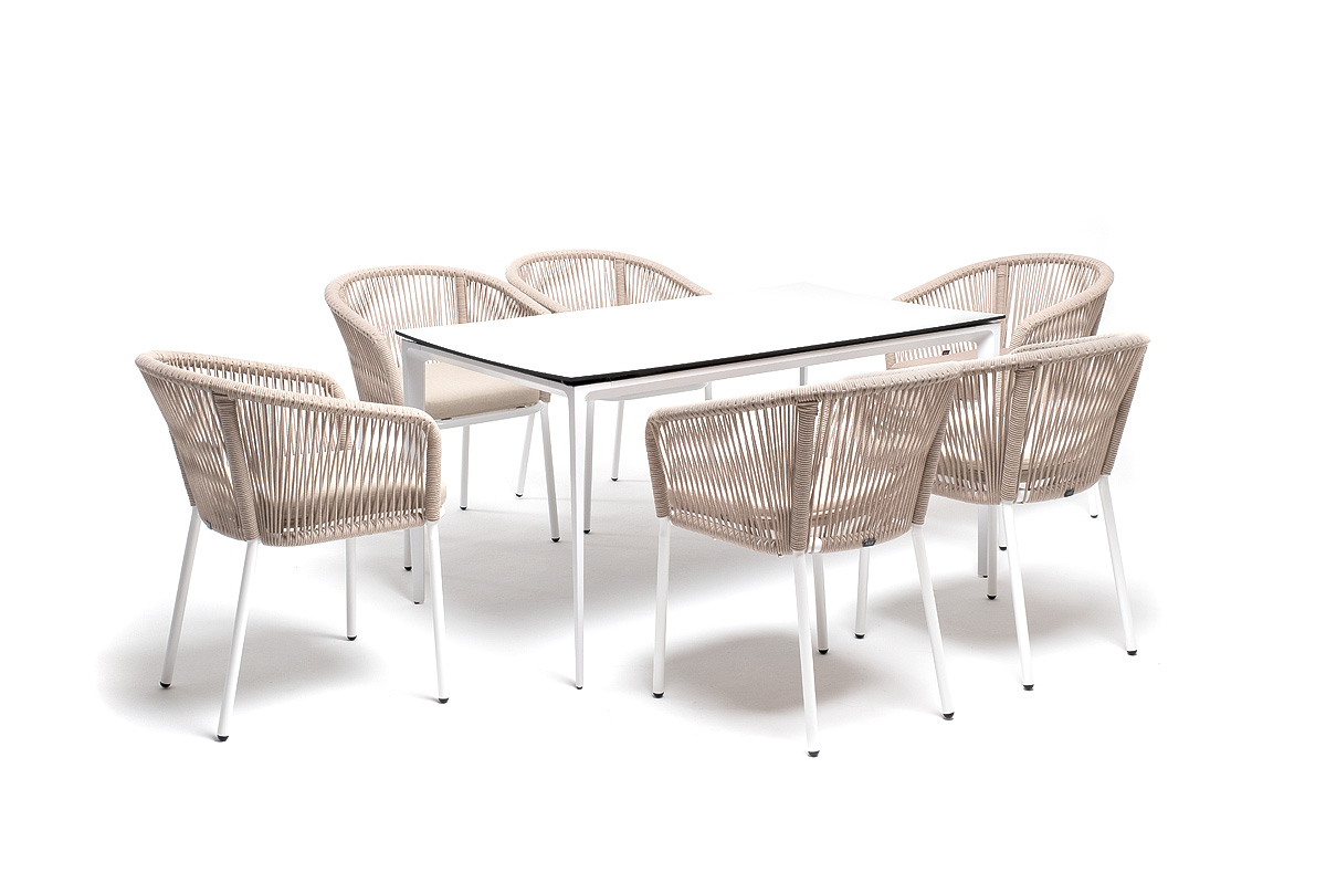 - 6 плетеных стульев «Марсель» из роупа, размером - 570×620×77,5 мм, цвет роупа - бежевый, каркас - белый.