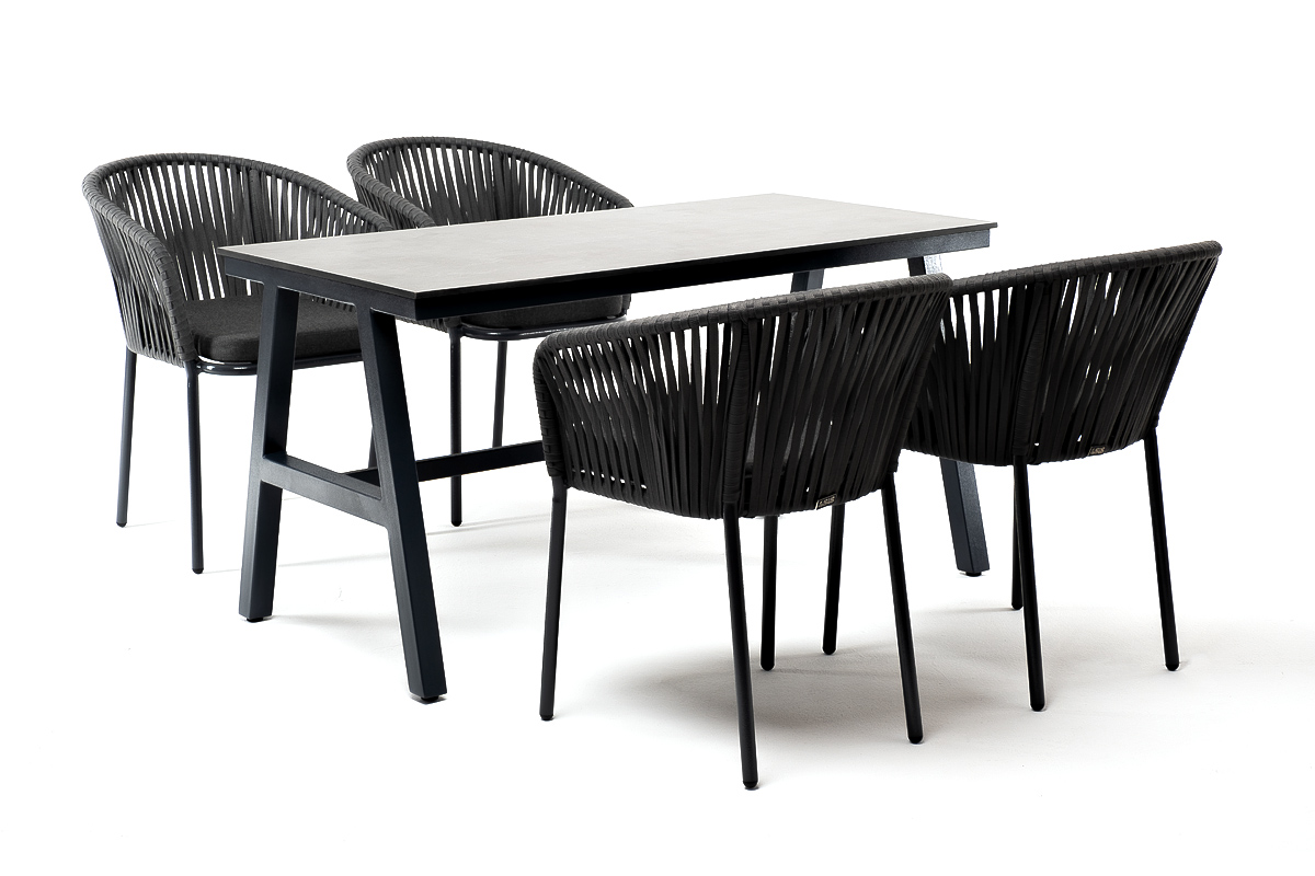 - 4 плетеных стула «Бордо» из плоского роупа, размером - 570х620х775 мм, цвет роупа - серый, каркас - темно-серый (RAL7024).