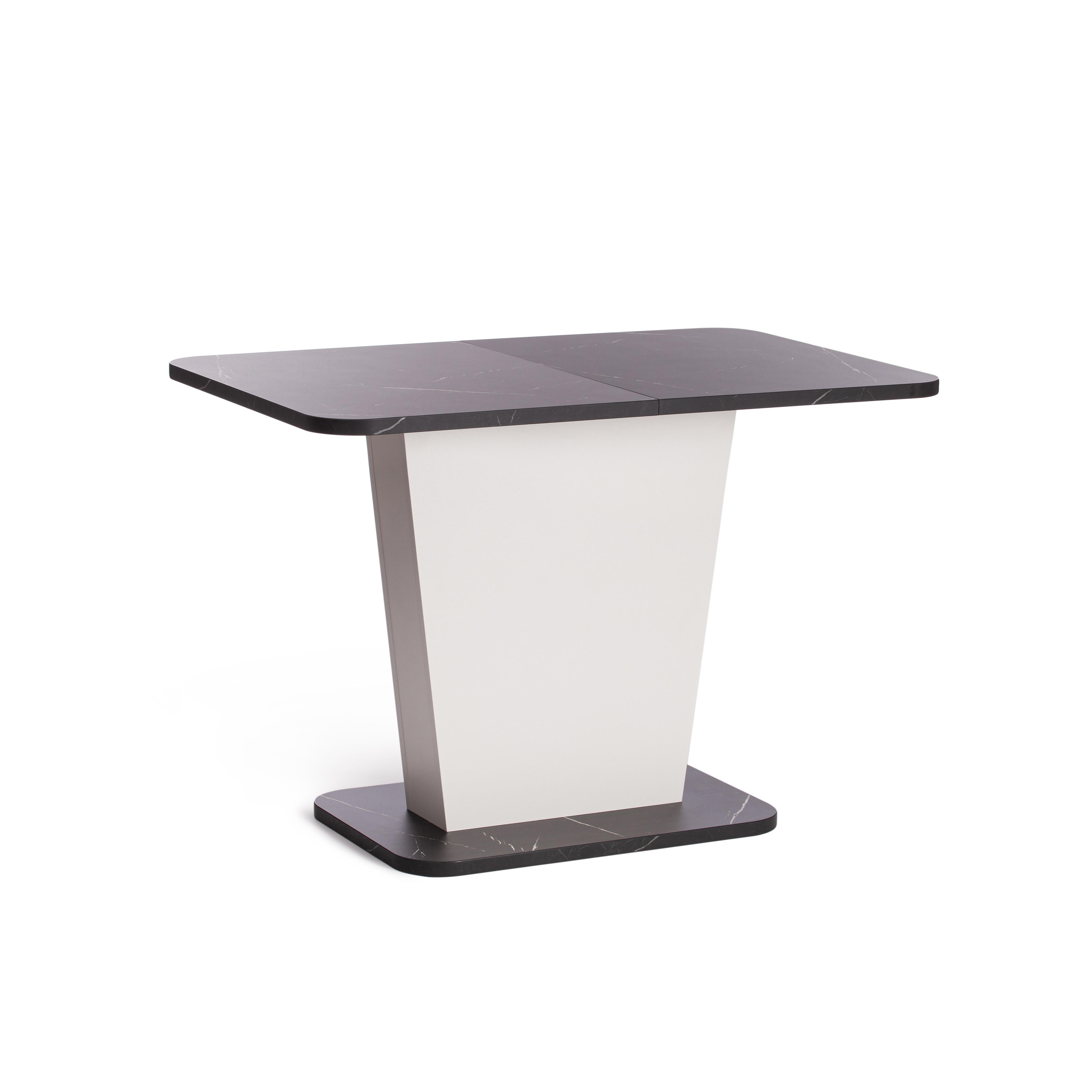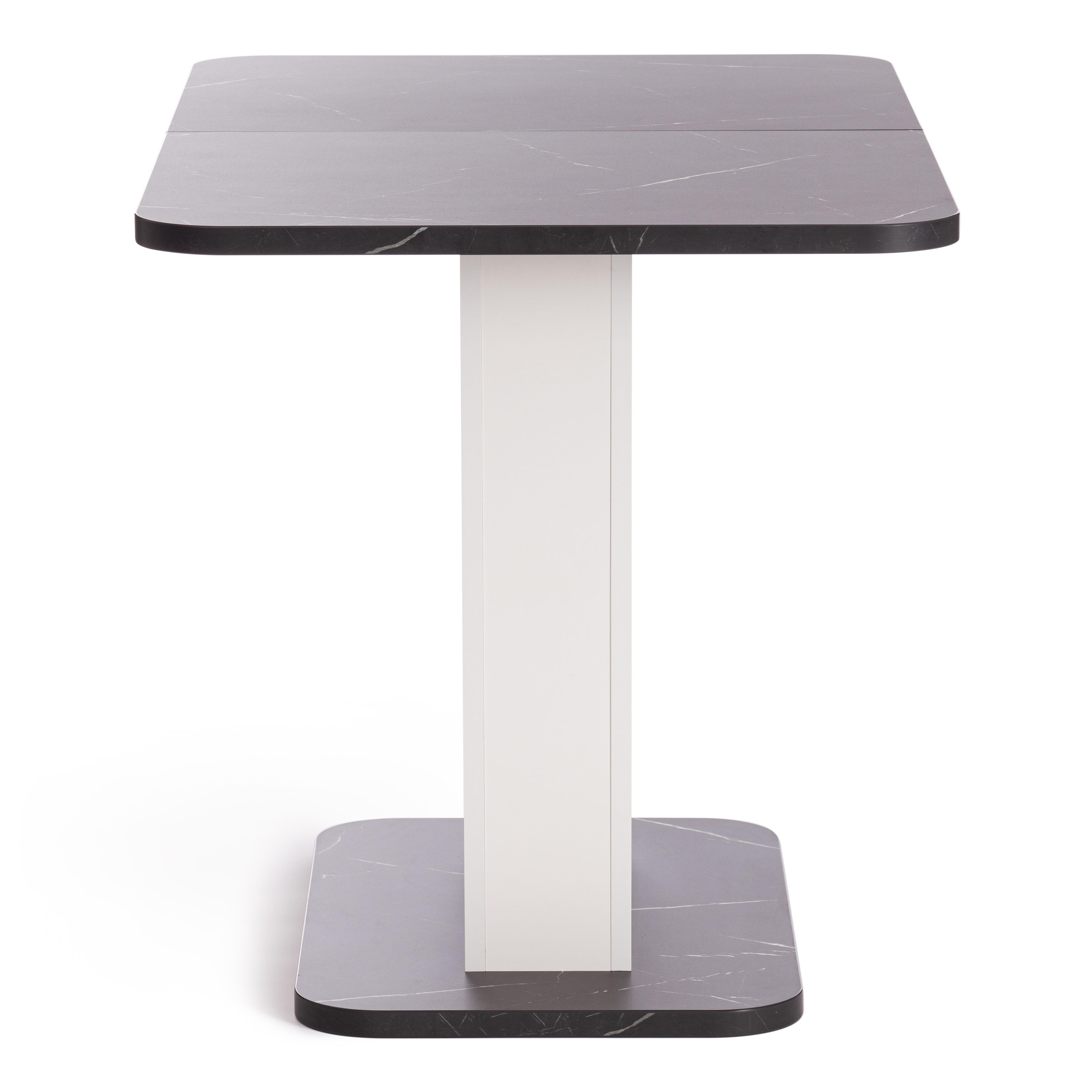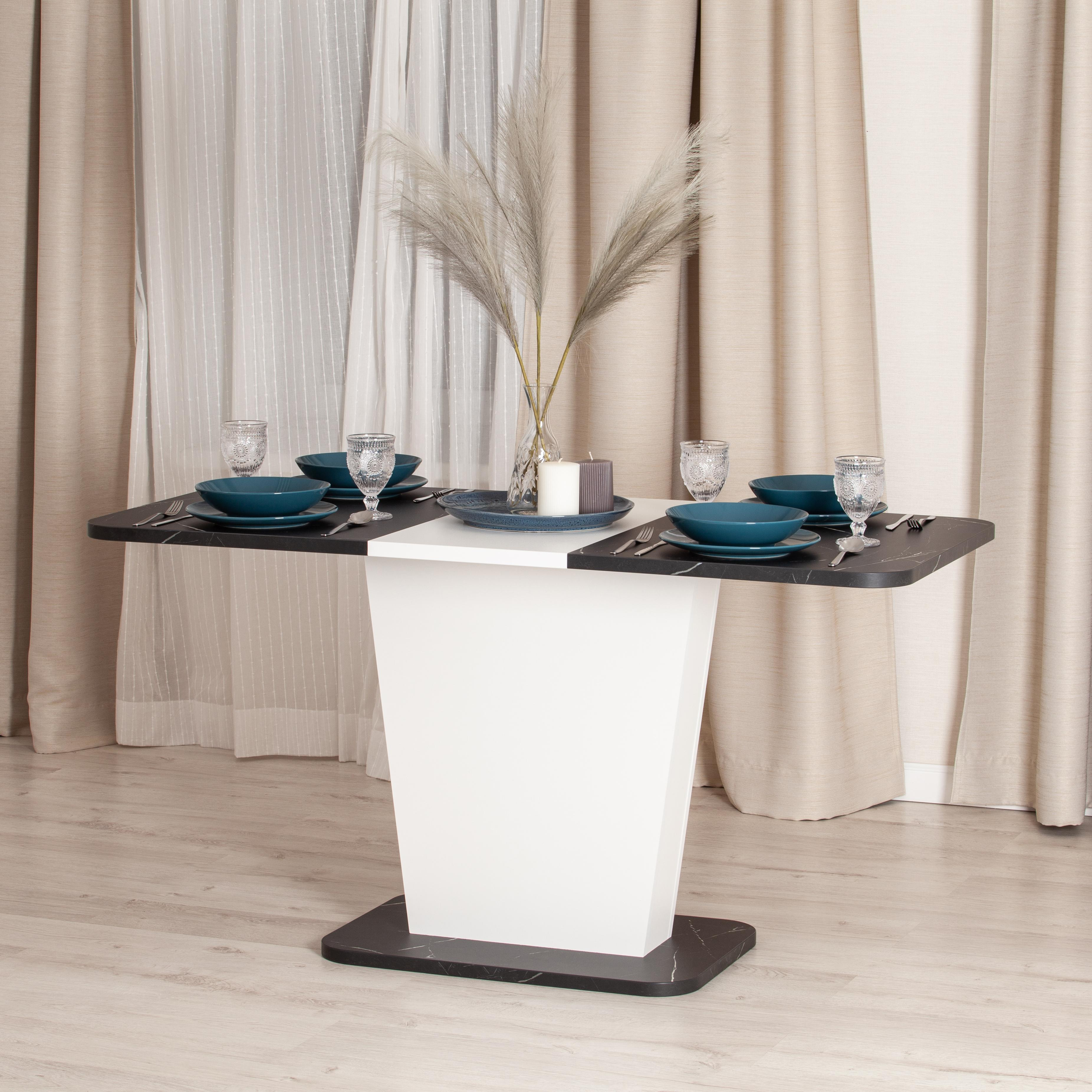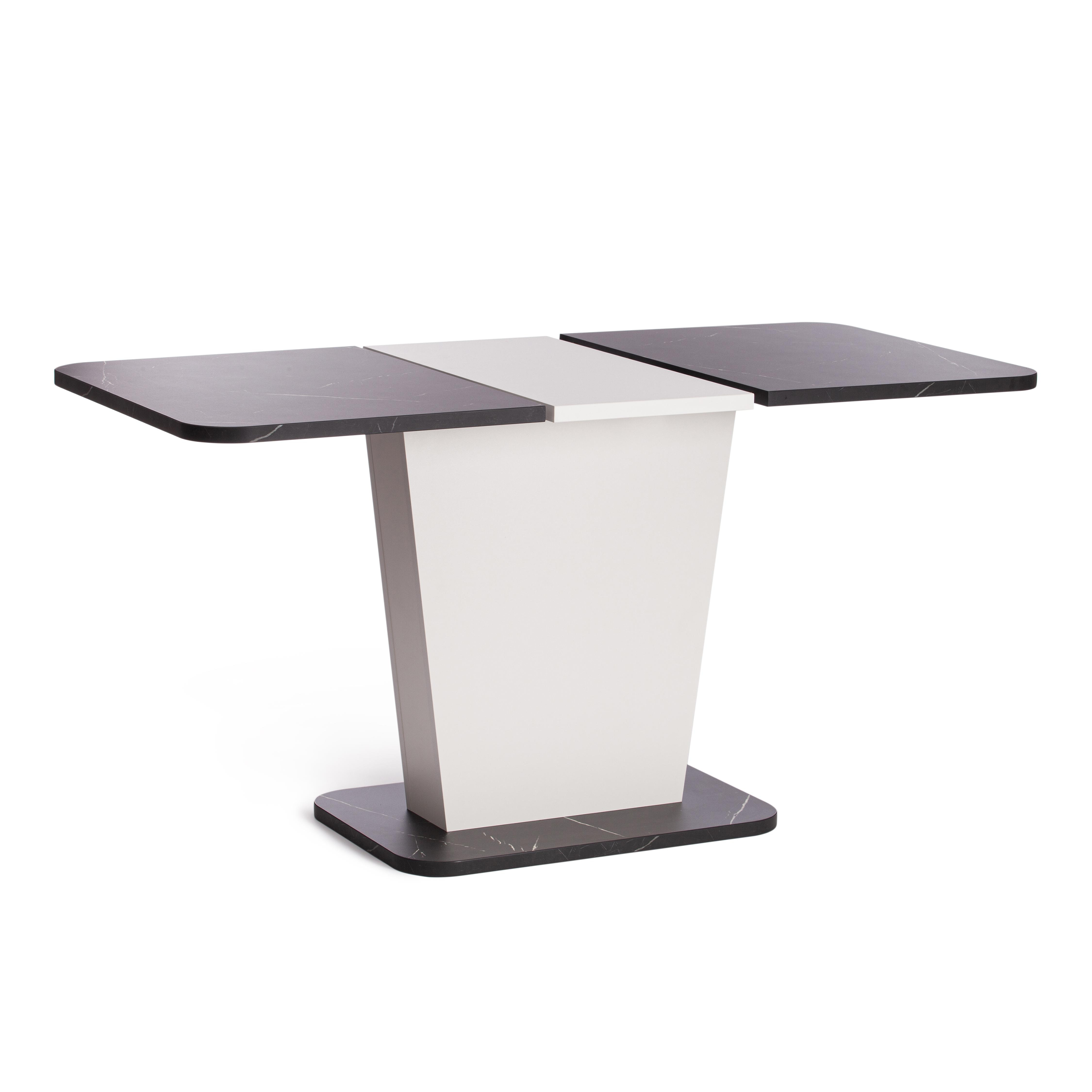 Стильный и компактный стол-трансформер GENT – это удачное сочетание простоты и элегантности. Стол хорошо впишется в обстановку гостиной, кухни или столовой благодаря отличному сочетанию белого цвета и цвета Мрамор Блэк Роял. Его размеры позволяют комфортно разместить от четырех до шести человек. Вставка стола убирается в ножку. Края оклеены прочной пластиковой кромкой толщиной 2 мм. ЛДСП толщиной 25 мм. Механизм раздвижения - синхронного типа со стопором. Стол GENT отлично подойдёт для гостиной, для кухни или для загородного дома. Стол очень прост в сборке, инструкция по сборке прилагается.