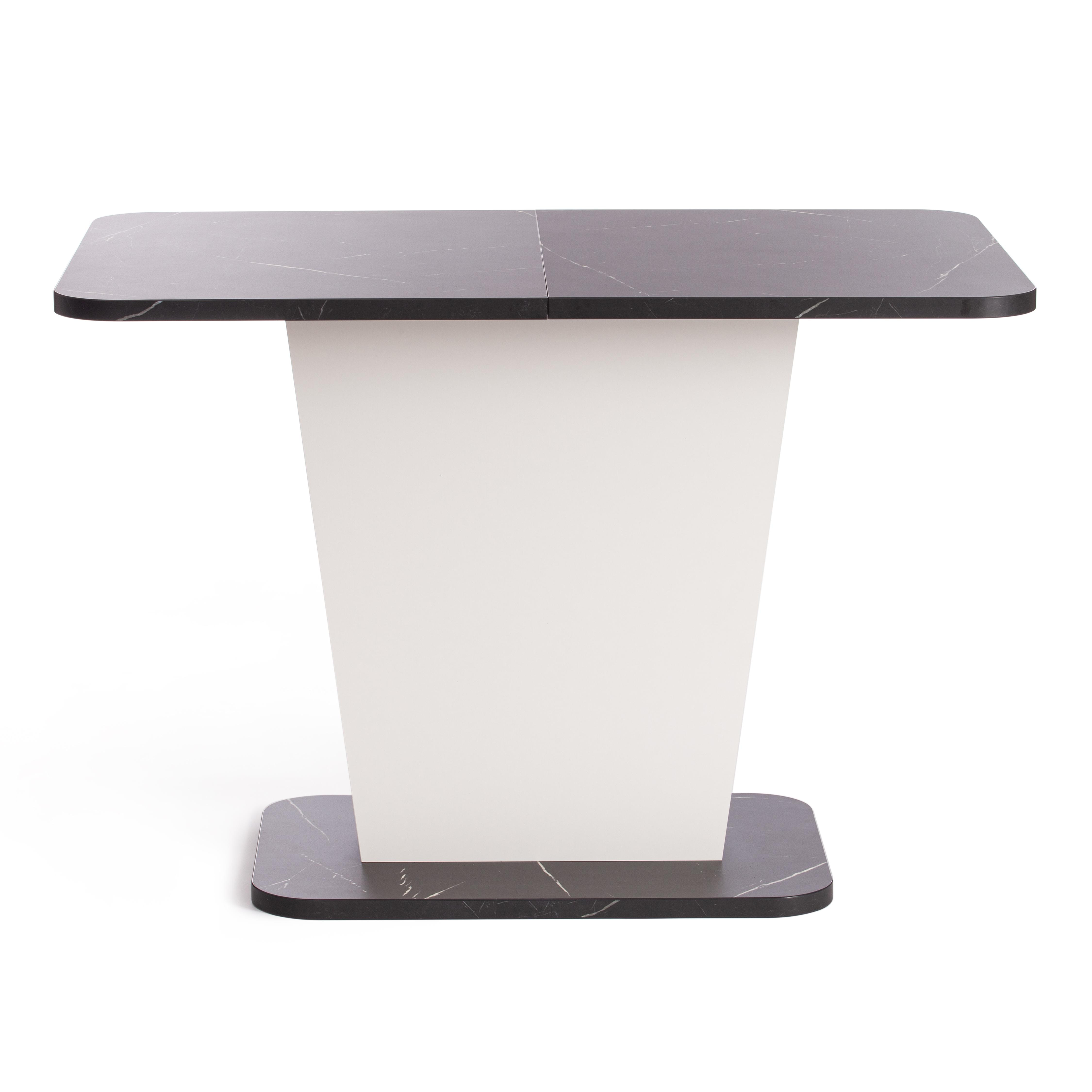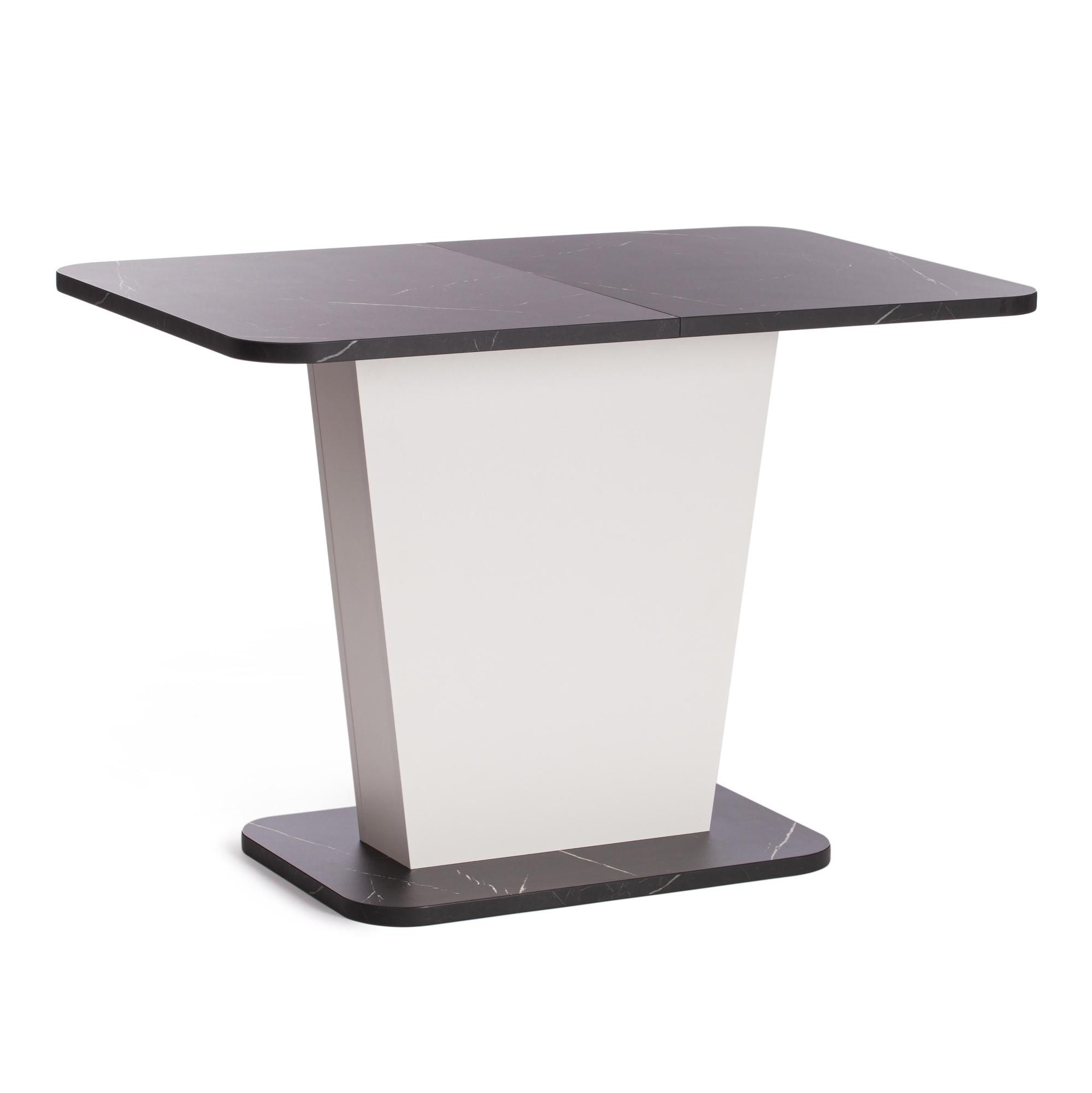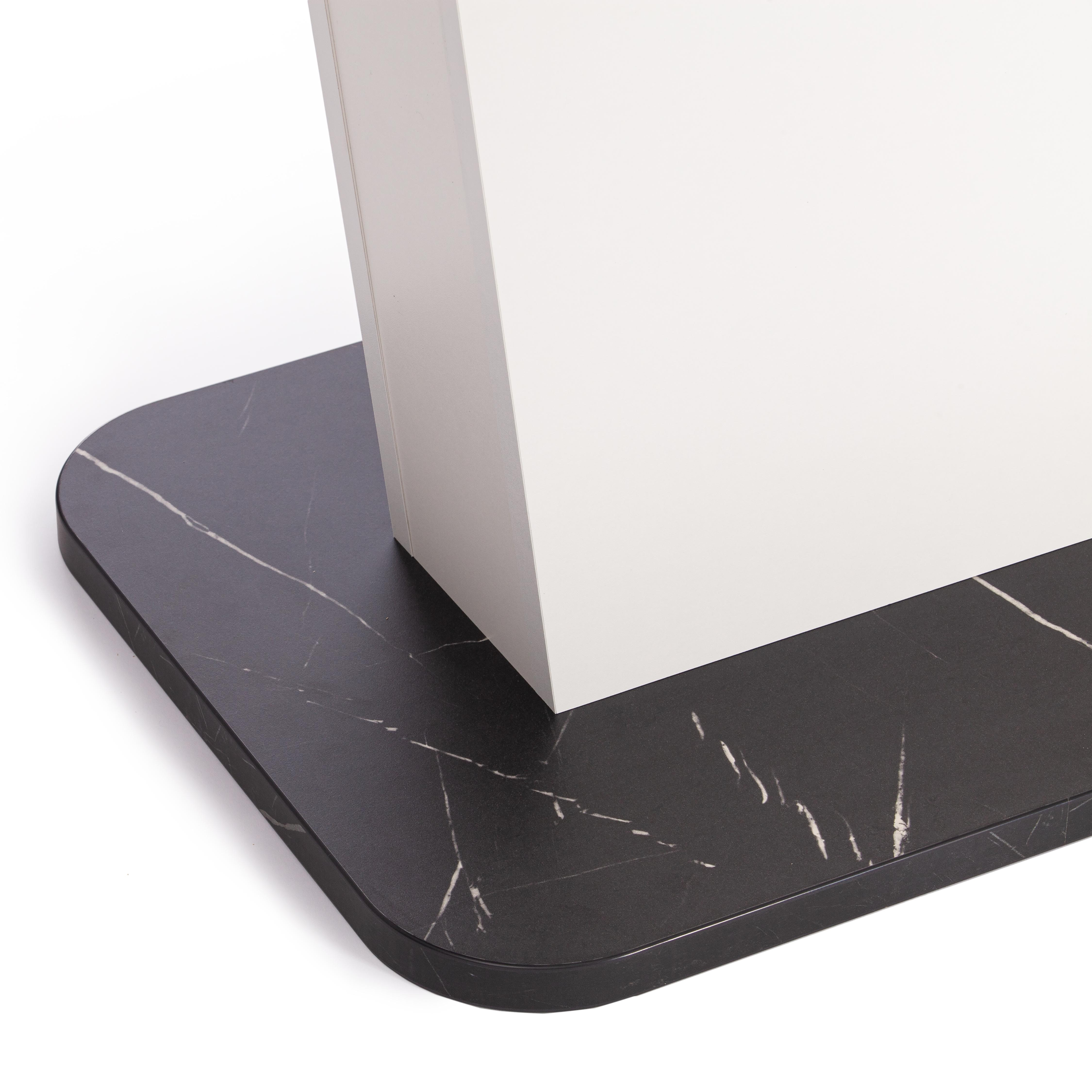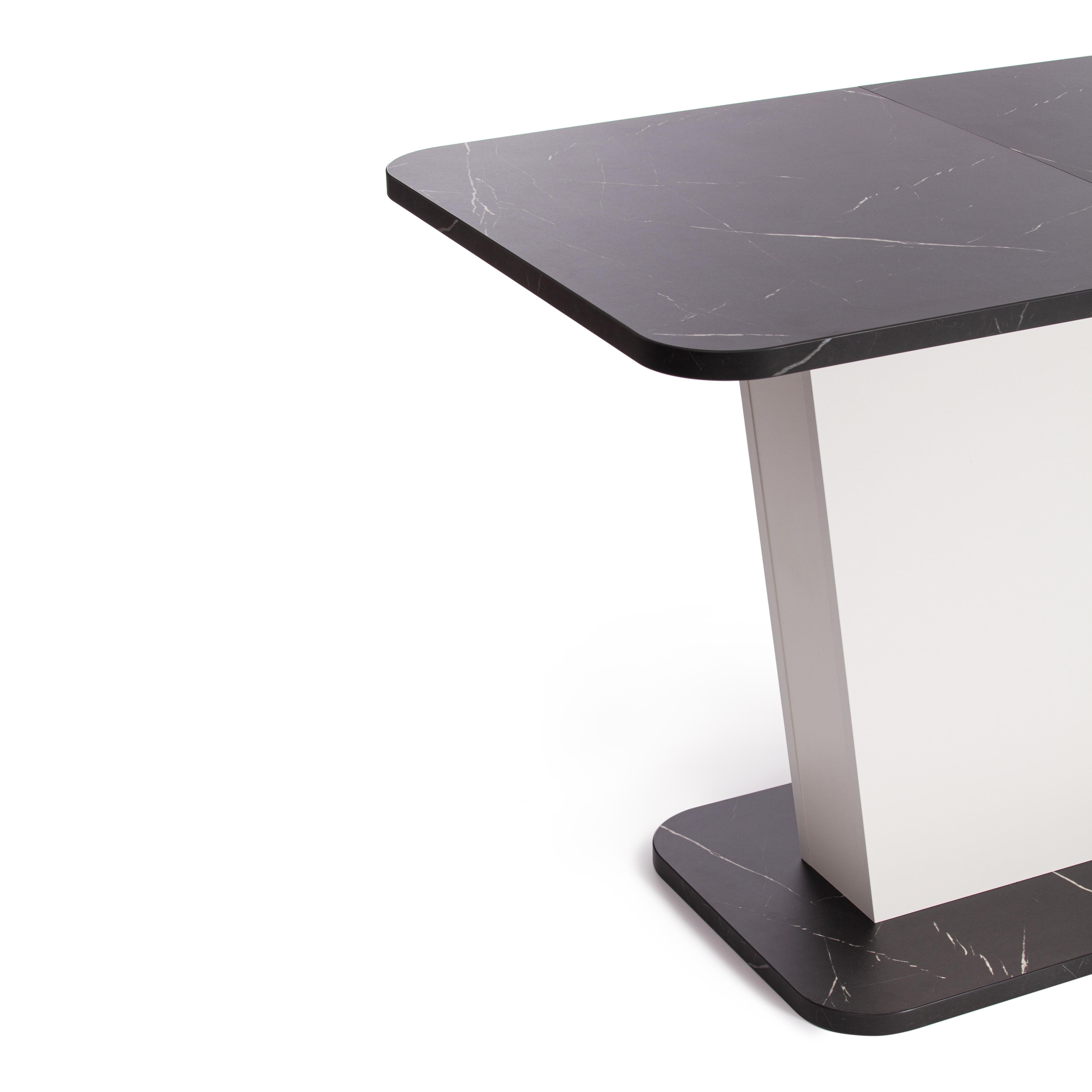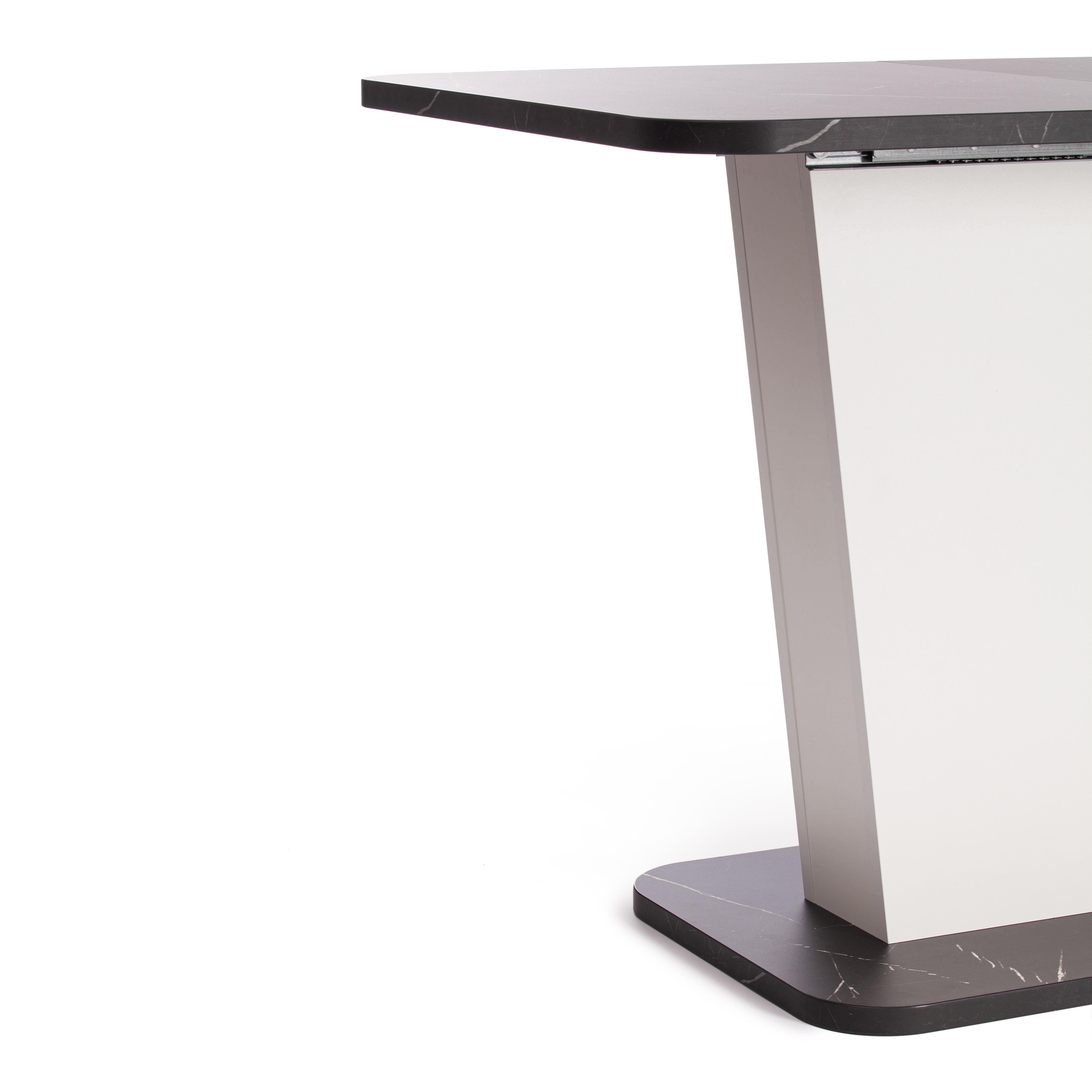 Стильный и компактный стол-трансформер GENT – это удачное сочетание простоты и элегантности. Стол хорошо впишется в обстановку гостиной, кухни или столовой благодаря отличному сочетанию белого цвета и цвета Мрамор Блэк Роял. Его размеры позволяют комфортно разместить от четырех до шести человек. Вставка стола убирается в ножку. Края оклеены прочной пластиковой кромкой толщиной 2 мм. ЛДСП толщиной 25 мм. Механизм раздвижения - синхронного типа со стопором. Стол GENT отлично подойдёт для гостиной, для кухни или для загородного дома. Стол очень прост в сборке, инструкция по сборке прилагается.