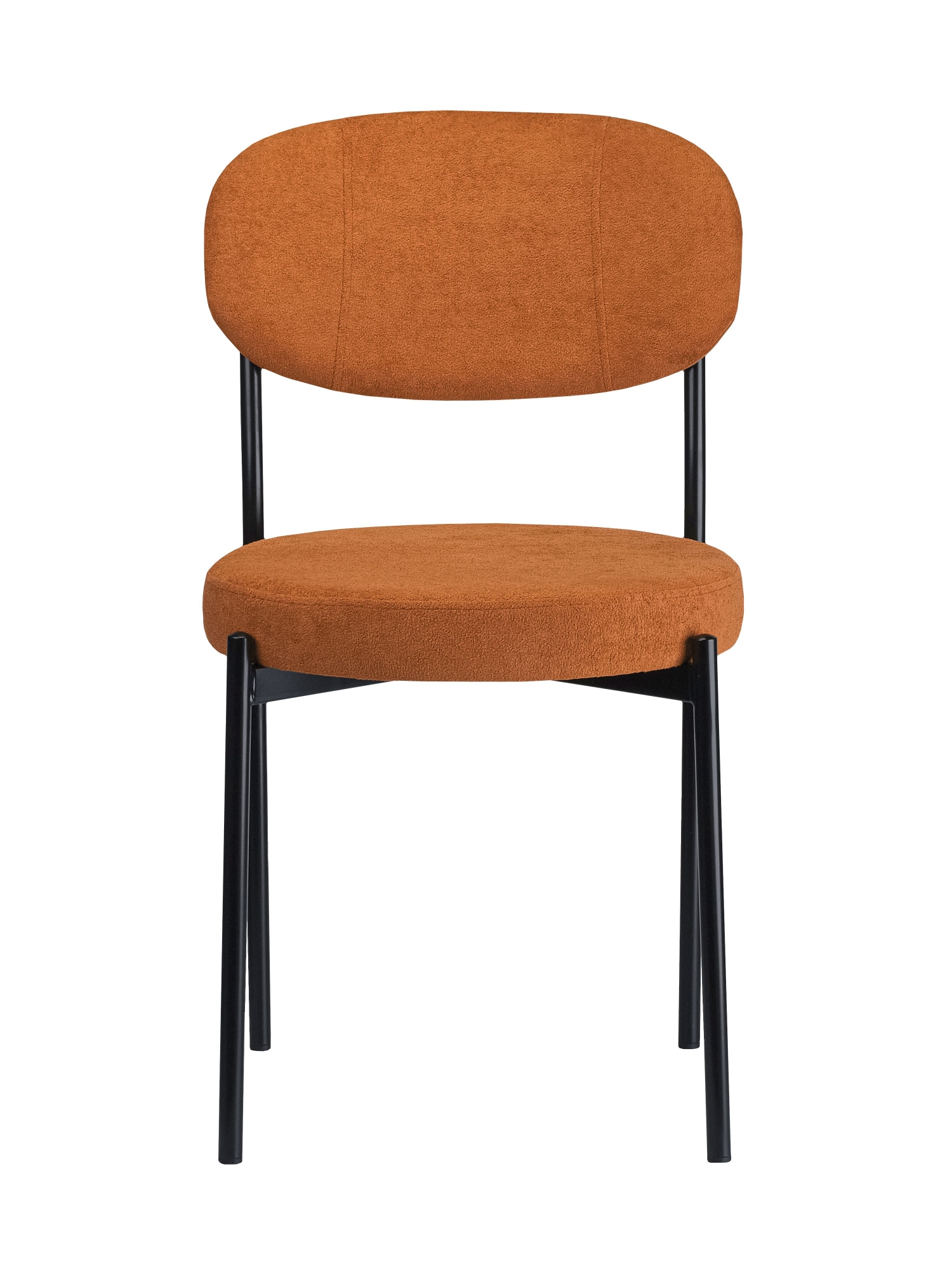 Прочная металлическая рама с тонкими линиями и воздушным дизайном обеспечивает долговечность и устойчивость, а дополнительная пластина усиливает место пересечения ножек для максимальной надёжности. Отдельное круглое сиденье и овальная спинка создают современный скандинавский образ, который дополняет интерьер в стиле минимализма.
