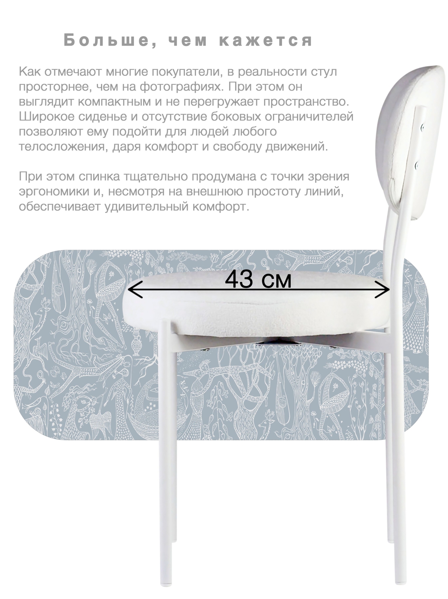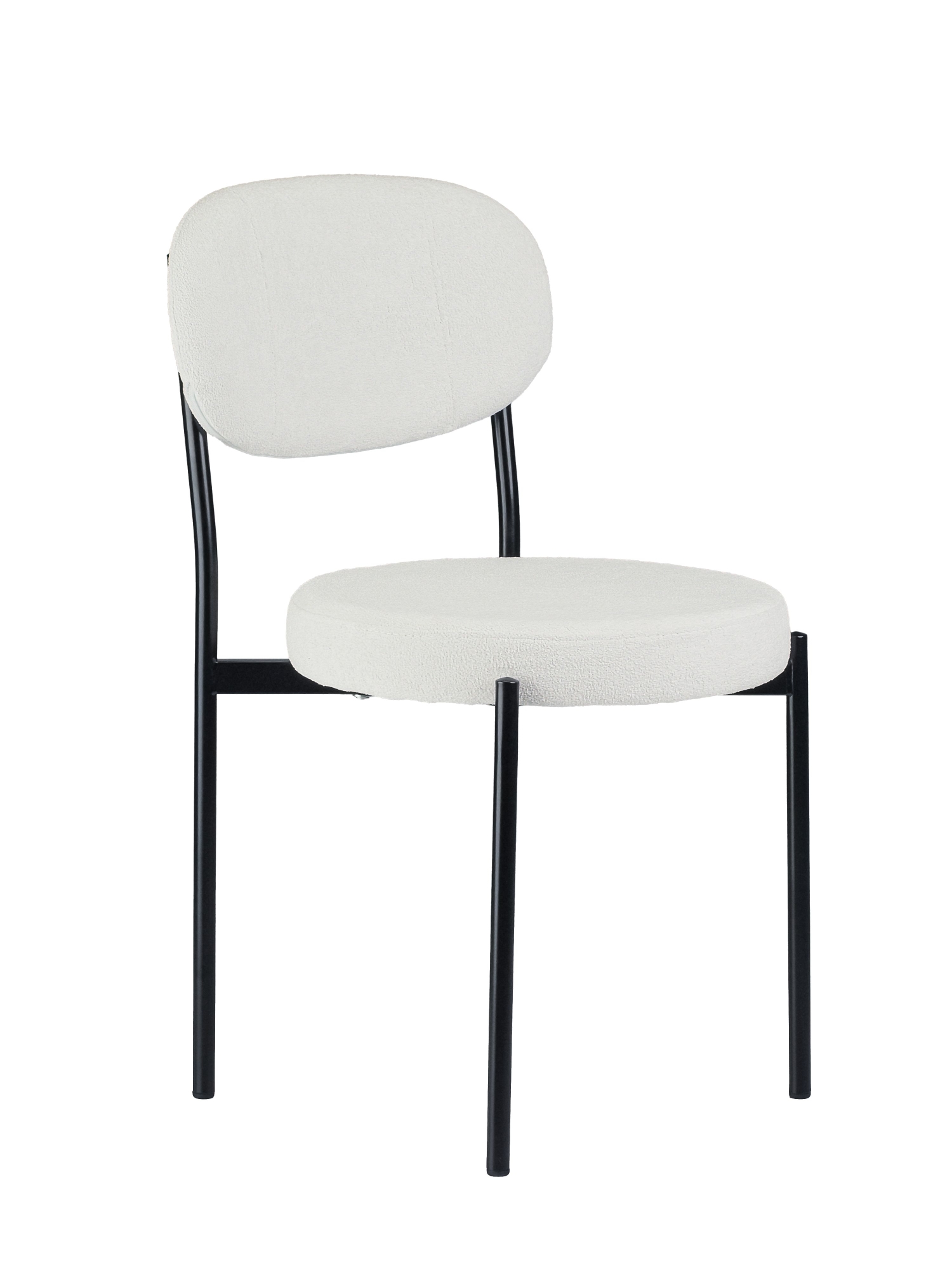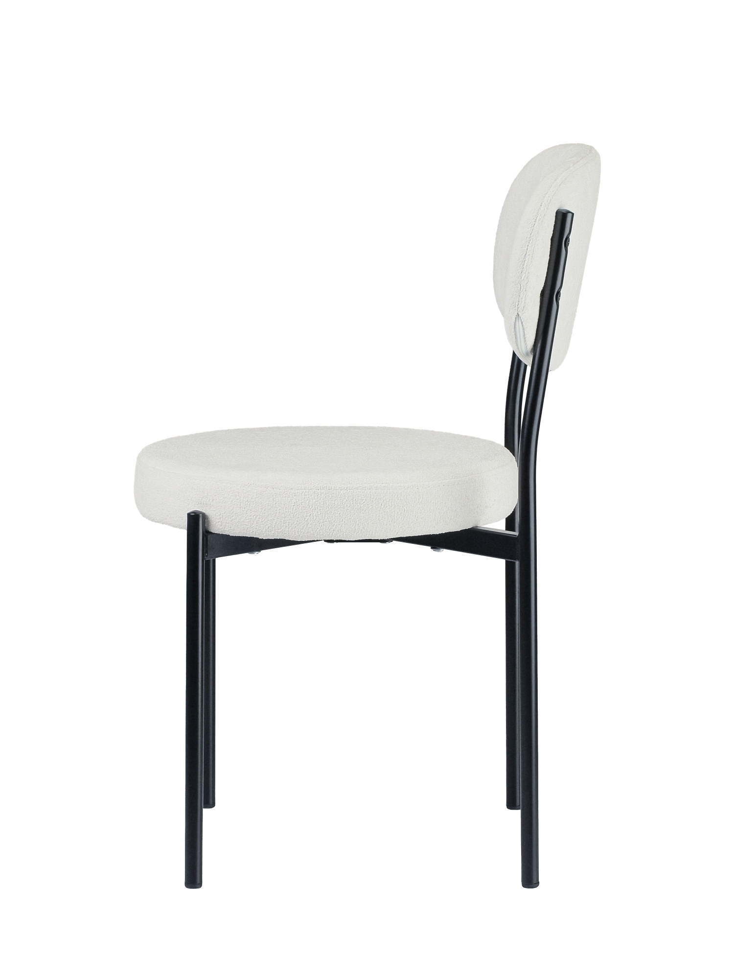 Прочная металлическая рама с тонкими линиями и воздушным дизайном обеспечивает долговечность и устойчивость, а дополнительная пластина усиливает место пересечения ножек для максимальной надёжности. Отдельное круглое сиденье и овальная спинка создают современный скандинавский образ, который дополняет интерьер в стиле минимализма.