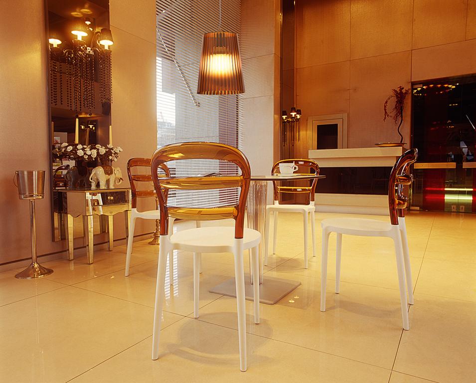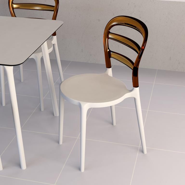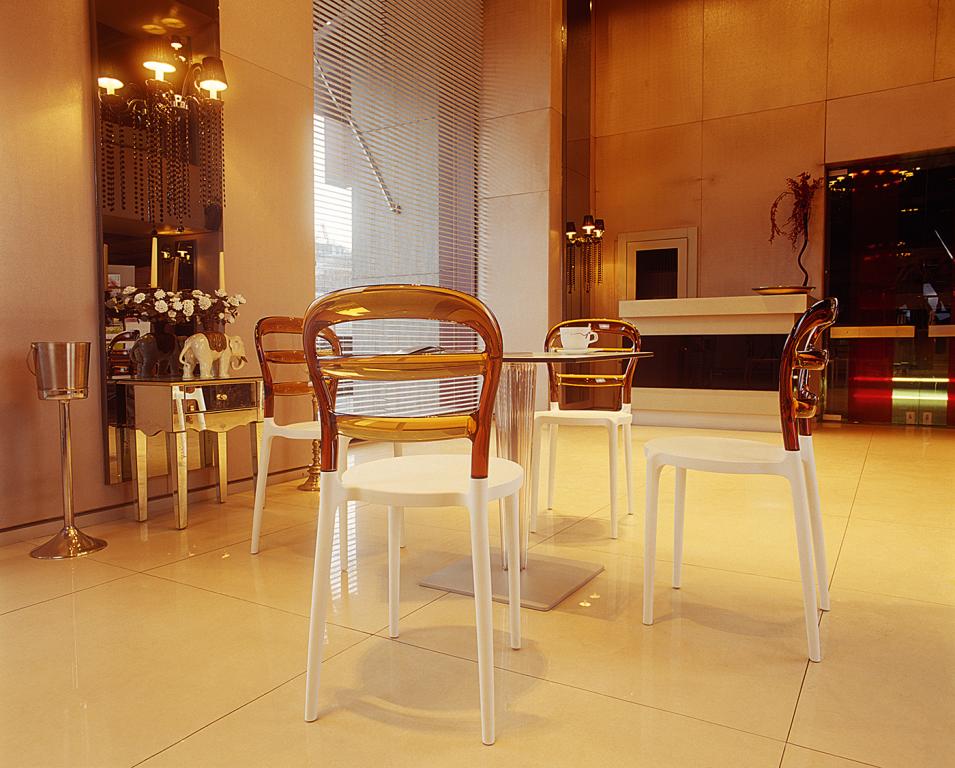 Пластиковый стул Miss Bibi изготовлен по новейшей технологии формования пластмасс под давлением. Сиденье выполнено из полипропилена, усиленного стекловолокном, а спинка - из прозрачного поликарбоната. Пластиковые стулья серии Miss Bibi с прозрачной спинкой станут отличным выбором для обстановки фуд-кортов, кафе, ресторанов и баров. Благодаря использованию высококачественных материалов, они долгое время не теряют своего привлекательного внешнего вида, даже несмотря на активную эксплуатацию. Благодаря отсутствию металлического каркаса и устойчивости к ультрафиолетовому воздействию, стулья из пластика Miss Bibi можно использовать в том числе и на открытых площадках. Особенности: - изготовлен из высококачественного поликарбоната и полипропилена; - не имеет металлического каркаса - не ржавеет, не поддается коррозии; - устойчив к ультрафиолету и атмосферным осадкам, выдерживает минусовую температуру до 20 градусов; - штабелируемый - занимает минимум места при хранении; - подходит для использования на открытом воздухе и в помещении. Количество в упаковке: 4 шт. Размер упаковки: 480х700х1020 мм. Объем упаковки: 0.343 м³. Информация по уходу: прозрачные элементы можно протирать тряпкой из микрофибры, допускается применение нейтрального мыльного раствора. Запрещается использовать спиртосодержащие или ацетоносодержащие (а также им подобные) средства.