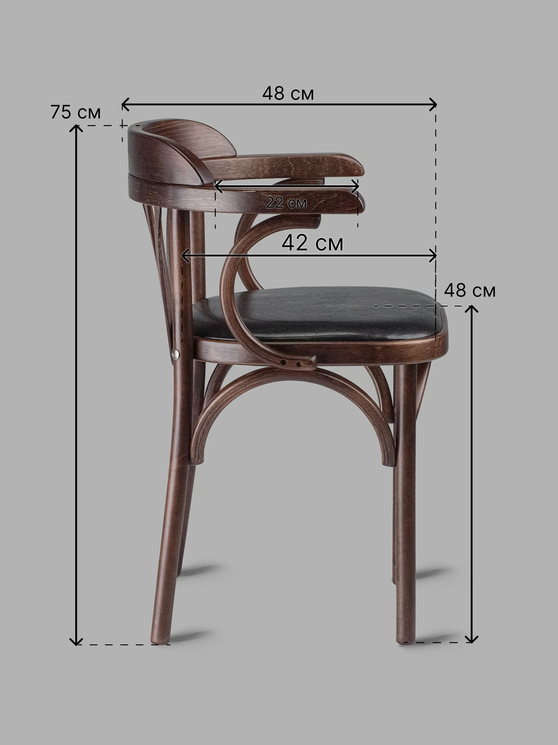Будь то уютная кухня вашего загородного дома, просторная гостиная или лаконичный интерьер ресторана и кафе - венский стул деревянный с мягким сиденьем и подлокотниками станет стильным и функциональным дополнением любого пространства. Сочетание комфорта, прочности и неповторимого дизайна делает этот кухонный стул со спинкой идеальным выбором для ценителей классики и поклонников уютной домашней атмосферы.